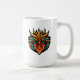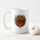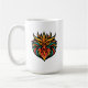 Une tête de dragon oriental frappante dans les tons rouge, orange et turquoise avec des contours noirs audacieux. Symbole de force, de sagesse et de puissance - parfaitement affiché sur cette tasse unique.
