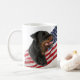 Une étude fière de tête de rottweiler devant un drapeau américain de ondulation.