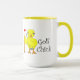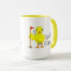 Le poussin de golf en texte bouclé avec un poussin jaune tenant un club de golf et le drapeau dans un trou de golf est un cadeau amusant pour les golfeurs.