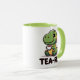 Insufflez votre heure du thé avec le charme préhistorique en utilisant cette adorable tasse à thé "Tea-Rex" ! Présentant un délicieux T-Rex vert prenant plaisir dans une tasse de thé relaxante, cette tasse est parfaite pour ceux qui adorent les dinosaures et les puns. C'est un ajout idéal à la collection de tous les amateurs de thé et une façon fantastique d'apporter une joie jurassique à votre routine quotidienne. Avec sa poignée et son intérieur vert vif, c'est un cadeau fantaisiste pour les amateurs de thé avec un sens colossal de l'humour.