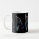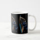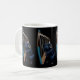 A chubby Abyssinian guinea pig, fur swirling in midnight-blue rosettes, reaches gracefully for the taut strings of a golden, harp-like instrument. Teal highlights punctuate the instrument, adding depth and elegance to the dramatic black backdrop. Light glances across the guinea pig’s fur and the metallic harp, giving the composition a sense of stage-worthy sophistication. The tiny musician seems lost in a private concert, every detail emphasizing grace, poise, and charm. This digital illustration brings a mix of whimsy and refinement, making it a perfect design for a mug that delights both animal lovers and fans of stylish, minimalist art.