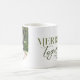 Cette belle et festive tasse de café de Noël avec une photo personnalisée est parfaite pour envoyer vos vœux les plus chaleureux à vos amis et à votre famille. La carte présente un design de feuilles vertes et de fleurs jaunes sur un fond, créant un look sophistiqué et élégant. Les mots "Plus Joyeux Ensemble" sont écrits dans une police joyeuse, ajoutant une touche de joie à la carte.