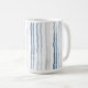 This coffee mug features thin watercolor stripes in shades of slate blue and gray on white for a contemporary modern look.