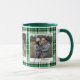 Tissu plaid vert & blanc 3 mug photo famille. Le design présente une texture de tissu de flanelle plaid blanc et vert faux avec des touches de vert clair. Personnalisez avec trois photos spéciales, et customisez avec votre ou vos nom(s). Conçu par Moodthology Papery