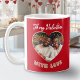 Celebrate 14th February with a gift that warms the heart as much as the coffee inside. This elegant Valentine's Day mug features a vibrant red wrap design with a faux gold bordered heart frame, ready for your favorite photo. Topped with a charming "To my Valentine" script and "WITH LOVE" in a vintage-inspired block font, it combines modern style with classic charm. Simply click 'Personalize' and use the template tool to upload your own picture.