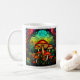 Mug avec un tableau en vitrail de champignons rouges dans une forêt mystique