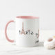 Paris avec la Tour Eiffel. Lettres noires et tour Eiffel rose. Amusante tasse. Diverses couleurs disponibles. Nom modifiable.