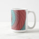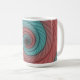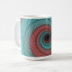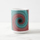Une spirale envoûtante composée de formes en couches semblables à des pétales qui tournent doucement vers un centre hypnotique. Le design passe sans heurt du sarcelle doux aux tons coralliens chauds, créant un contraste saisissant mais équilibré. Chaque couche incurvée se chevauche avec des ombres douces, donnant à la pièce une apparence sculptée, presque tridimensionnelle.