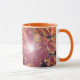 Tasse à café avec ma conception de feuilles d'érable d'automne tourbillonnant autour d'un soleil brillant.