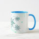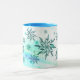 Des flocons de neige bleus et argentés surplombent une brise tourbillonnant d'hiver turquoise et bleue. Placez-vous sur un arrière - plan blanc. Design amusant et délicat.
