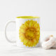Ce mug présente une belle impression de tournesols, l'intérieur représenté est jaune.