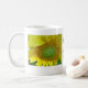 Un tournesol au centre vert clair avec texte noir : "Bonne journée".