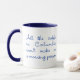Écrit dans une police marron de style d'écriture de main des deux côtés de la tasse.