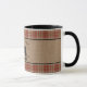 Une belle tasse à café à thème rustique à deux tons, avec votre nom de famille et "ferme", ranch, homestead ou autre texte désiré et une date établie. Ce design unique et personnalisé présente des oeuvres dessinées à la main d'un tracteur agricole vintage sur un support imprimé style burlap et entouré d'un beau plaid rustique rouge et kaki. Pour voir d'autres modèles comme celui-ci, n'hésitez pas à visiter ma boutique ici à "Zazzle.com/Rustic_Charm". Merci .