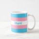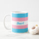 Tasse arc-en-ciel transgenre qui peut être customisé avec votre nom ou un autre texte. Soutenez vos amis trans avec ce cadeau mignon qui présente les couleurs du drapeau transgenre bleu, rose et blanc du bébé. Personnalisez ce joli cadeau pour la communauté LGBTQ.