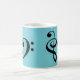 Cette clef de basse composite et la conception de coeur musical de clef à trois clefs sont présentées sur un arrière - plan bleu oeuf de robin, qui peut facilement être changé à n'importe quelle couleur claire de votre choix. La tasse à café est un cadeau bien pensé pour tout amateur de musique, musicien, professeur de musique ou étudiant en musique.