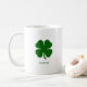 Conception simple de trèfle à quatre feuilles vert émeraude irlandais - Personnalisez-la avec vos propres noms, mots et couleurs ! Célébrez la chance avec style grâce à cette conception personnalisée de trèfle à quatre feuilles ! Dotée d'un design minimaliste avec une touche simple et moderne, cette tasse peut être personnalisée avec ou sans votre nom ou mot préféré. La couleur vert émeraude vibrante ajoute un look frais et audacieux, tandis que la typographie élégante apporte un charme et une originalité uniques. Choisissez la couleur de fond qui vous convient ou laissez-la telle quelle pour garder l'attention sur le trèfle porte-bonheur. Que vous l'offriez à un être cher ou que vous vous traitiez, cette tasse rend chaque gorgée un peu plus chanceuse !