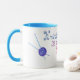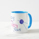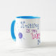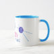 Une tasse pleine d'esprit pour un tricoteur. "Le Tricot est mon endroit heureux" est écrit sur le devant central de la tasse en lettres colorées conçues pour ressembler à du fil, et la tasse est décorée de boules bleues de fil et d'aiguilles de tricot. C'est génial pour un tricoteur.