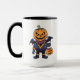 Caractère d'Halloween avec une tête de citrouille et ailes de chauve-souris offrant un tour ou des gâteries