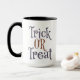 Cette tasse est l'ajout parfait à vos accessoires de cuisine Halloween. Trick ou Traiter le libellé en orange muet et violet sur une tasse à deux tons. Une façon amusante et éffrayante de déguster du café, du chocolat chaud ou votre boisson préférée !