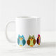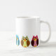Un groupement des hiboux dans trois tons saisissants de bijou de vert bleu et olive, et profondément de magenta.