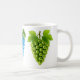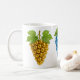 Ce mug blanc a trois grappes de raisin colorées : l’une bleu vif, l’autre vert éclatant et un autre jaune or. Les grains brillants et juteux se détachent parfaitement sur le fond clair, créant un contraste visuel saisissant. Le réalisme des feuilles et l’originalité des couleurs apportent une touche artistique audacieuse. Idéal pour un style fruité, graphique et moderne.