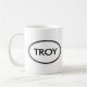 Vérifiez cette tasse de troy ! Votre nom est-il de troy ? Ou avez-vous un mari, un ami, un membre de la famille masculin ou un mâle Troie appelé par ami ? Si oui, cette tasse "de timbre nommé" est exactement le cadeau que vous recherchez ! Les caractéristiques de conception "Troie" dans le grand lettrage noir entouré par deux ovales, un mince et un épais.
