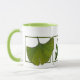 Trois feuilles de part et d'autre de cette tasse créent une atmosphère tranquille. Graphiques d'une feuille de ginkgo, d'une feuille de chêne et d'une feuille d'érable.