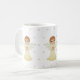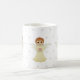 Belle tasse avec trois mignons petits anges avec motif étoilé sur arrière - plan blanc.