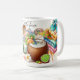 Sip your favorite drink with a smile thanks to this vibrant tropical beach mug featuring a chill turtle in a straw hat, exotic surfboards with floral designs, a delicious coconut drink, flip-flops, towels, and a starfish – all bursting with vacation vibes! Perfect for summer lovers, beach bums, or anyone who dreams of sunshine and ocean breezes. This mug makes a fun, colorful gift for turtle fans or tropical decor enthusiasts!