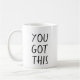 You Got This Mug vous rappelle que vous pouvez faire face à tous les défis qui peuvent surgir. Ce produit avec Black Text de chaque côté est parfait pour vous ou tout buveur de café dans votre vie. Fait une grande idée cadeau de Noël, idée cadeau d'anniversaire ou juste parce que idée cadeau. N'oubliez pas de jeter un coup d'oeil au reste de mes tasses dans mon magasin Gkrew Productions.