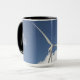 Photo d'une éolienne blanche montée contre un ciel bleu.