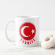 Célébrez votre héritage turc ou chérissez vos souvenirs de visite de ce beau pays avec le Türkiye Coffee Mug. Cette tasse présente un design centré autour de la nation de Türkiye (Turquie), qui présente probablement l'emblème emblématique de Ay-Yıldız (croissant et étoile) du drapeau turc ou le nom du pays en caractères gras. C'est la taille idéale pour votre matin Türk Kahvesi (café turc) ou toute autre boisson chaude. Cette tasse patriotique est un excellent cadeau pour les amis turcs, la famille ou toute personne fière de la nation. Style : Mug en céramique classique (souvent disponible en style classique ou en deux tons). Capacité (Zazzle Mug typique) : Disponible en format 11 onces ou 15 onces. Construction : Construction céramique forte et de haute qualité. Soins : Micro-ondes et lave-vaisselle pour un nettoyage et un chauffage faciles. Sécurité : satisfait aux exigences de la FDA en matière de salubrité des aliments et des boissons.