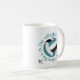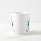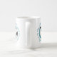 Cette équipe sportive de volleyball colore une tasse de café avec monogramme, avec la phrase typographique "Le terrain de volleyball est mon endroit heureux" et deux contours en turquoise encerclant un volleyball avec des panneaux turquoises, noirs et blancs - personnaliser avec monogramme - par katz_d_zynes