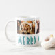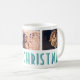 Typographie moderne Joyeux Noël Photo Collage Café Mug. Cette tasse de Noël moderne et simple est livrée avec Joyeux texte de Noël dans la typographie branchée et trois collages photo - insérez vos photos préférées dans le modèle. Idéal pour un cadeau de Noël personnel pour vos amis et votre famille.