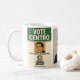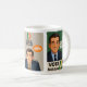Tasse de café en forme de caricature avec 3 épisodes historiques dans la vie d'Adolfo Súarez. D'un côté, l'affiche de l'Union du centre démocratique (UCD) aux élections de 1977. De l'autre côté, l'affiche du Centre démocratique et social (CDS) en 1987. Et au milieu, Adolfo Súarez prononçant les mots inoubliables : "Je peux promettre et je promets".