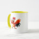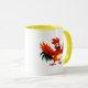 Cette image humoristique présente une illustration vive et joyeuse d’un coq complètement fou. Le design montre un coq aux plumes orange et rouges éclatantes, avec un ventre beige clair et une queue noire élégante. La volaille est représentée dans une Bassecourt à la ferme, ailes grandes ouvertes, sourire immense et yeux ronds exorbités qui lui donnent une expression délirante et amusante. La composition est nette, précise, en haute définition, avec un graphisme soigné sur fond blanc. Chaque détail de cette création est travaillé : plumes, crête rouge vif, bec jaune éclatant, pattes fines et griffues. En tous cas il aime séduire les poules, ça ce voit.
