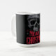 design graphique audacieux et grincheux, avec un crâne très détaillé et dessiné à la main, couronné d'un chapeau de Père Noël rouge en détresse. L'illustration a un aspect lourd, texturé et légèrement taché, dressé contre un arrière - plan gris foncé. Sous le crâne, les mots "MERRY CHRISTMAS" sont présentés dans une proéminente typographie rouge stylisée. Ce design offre une alternative unique pour la saison des fêtes.