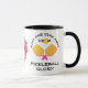 Fun UN DINK LOIN DE PICKLEBALL GLORY Monogram Mug pour les hommes et les femmes qui aiment jouer au pickleball. La conception montre une paire de pagaies à pickleball et le libellé dit SEULEMENT UN DINK LOIN DE PICKLEBALL GLORY. Ce texte est PERSONNALISABLE pour que vous puissiez le remplacer par votre propre choix de texte. Ce Monogram Pickleball Mug est conçu pour les mamans, les papas et les amis qui aiment jouer ou regarder le pickleball international ensemble et imaginer ces sublimes diners. Achetez une tasse pour chaque personne de votre équipe ou de votre famille. Choisissez parmi une sélection de motifs amusants de pickleball par Berean Designs.