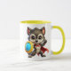 Un petit loup qui ressemble à un vrai super-héros. Il porte une cape rouge qui flotte derrière lui et tient un bouclier doré avec un centre bleu brillant. Son regard est déterminé et son sourire montre qu'il est prêt à affronter n'importe quelle aventure. Avec ses petites pattes solides et son air courageux, il a l'air sûr de lui et fort. Son pelage gris et blanc est doux, et ses grands yeux brillent comme ceux d'un vrai justicier. Ce petit loup est à la fois mignon et plein d'énergie.