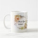Une jolie tasse de Merci mariage personnalisée pour rendre un merci spécial à vos demoiselles d'honneur ou à d'autres personnes d'importance pour votre journée spéciale. La tasse présente un design floral élégant avec des feuilles, des roses et une doublure dorée. Personnalisable aussi pour d'autres situations.