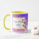 Une tasse de photo d'anniversaire avec un groupe de ballons colorés volant dans le cadre de ciel, plus le texte personnalisable "joyeux anniversaire" sur l'avant et de retour. Ajoutez une photo à l'avant et une photo différente au dos, ou ayez la les deux même chose.