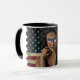Un drapeau rustique américain avec un bord en détresse avec une femme avec lunettes de soleil inspirées des USA.