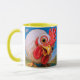 Un mug décoré d'une image d'une poule, elle est curieuse, elle penche sa tête pour t'observer de près.