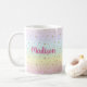Cute et colorée tasse de café pour quiconque aime les licornes. Ajoutez le nom à l'arrière de la tasse. Couleurs arc-en-ciel avec une mignonne licorne. Fait un grand cadeau pour les anniversaires et Noël.
