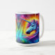 Un portrait époustouflant d'une licorne mystique entourée de couleurs vives et de feuillage forestier luxuriant. La crinière flottante de la licorne présente un spectre radieux, créant une atmosphère magique d'imaginaire.