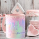 Mug Unicorn rose nom holographique gouttes
