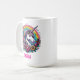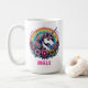 Unicorne arc-en-ciel colorée et fleurs avec un arrière - plan arc-en-ciel tasse de café personnalisée.