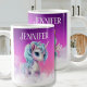 Unicornes Cute 2 faces dans les nuages et le ciel rose avec étoiles & Nom personnalisable. Donnez cette tasse de licorne à un amant de licorne. Mets-la ou son nom dessus et rend cette tasse personnelle. Se présente en différents modèles, tailles et couleurs. Voir d'autres produits dans Unicorn Collection. Un cadeau réfléchi à une petite princesse ou des prins.