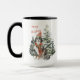 Tasse à café de Noël avec une jolie aquarelle illustration d'un chien de montagne bernois prêt pour une sortie de vacances avec un casquette rayé rouge et blanc et un foulard rayé vert et rouge avec de la neige tombante et des arbres à feuillage persistant verts en arrière - plan. Joyeux salut de Noël peut être changé à votre préférence ou retiré complètement. Disponible en 11oz et 15oz avec jante et poignée supplémentaires options de couleurs et de styles à choisir.